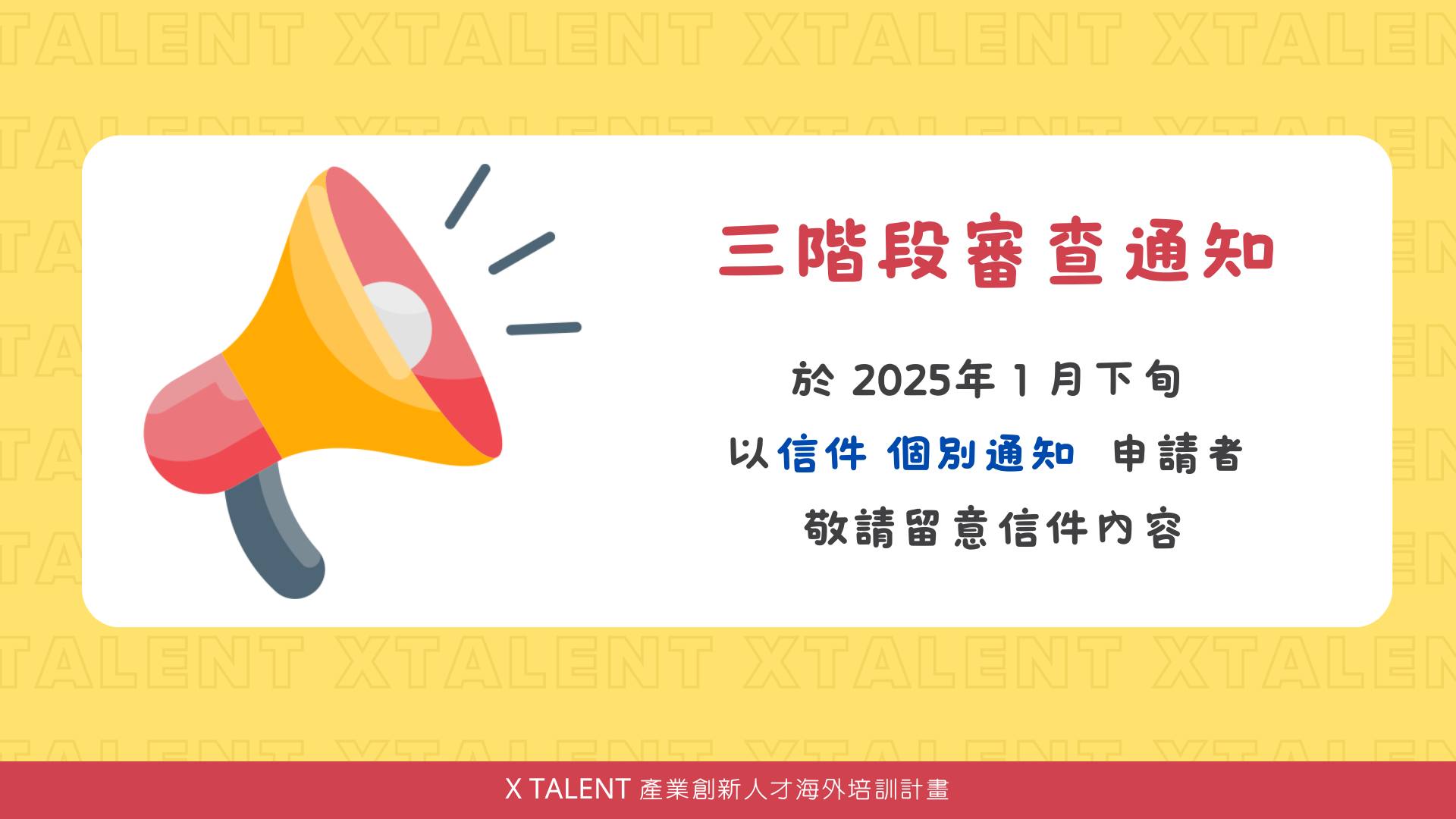 計畫辦公室將於2025年1月下旬以信件形式,個別通知申請者有關申請的最新進展