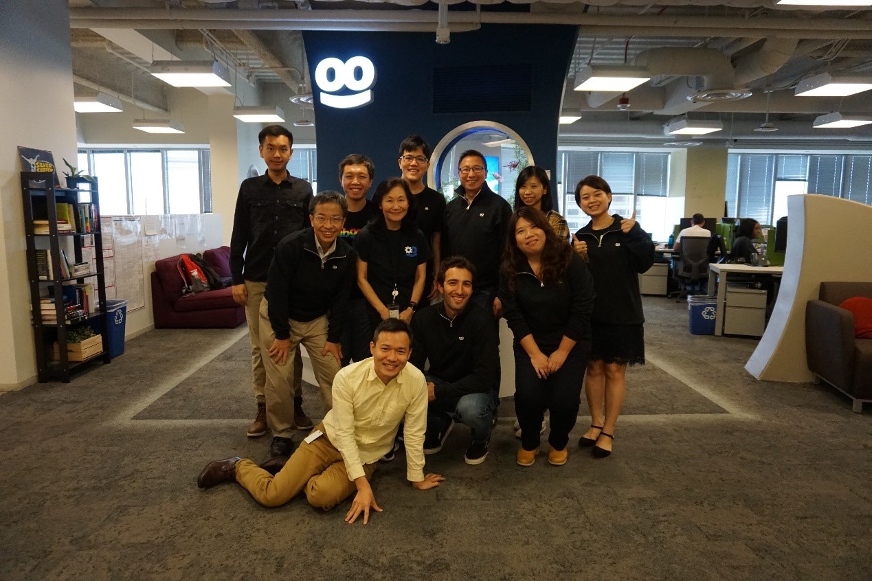 【上圖】 科政中心莊裕澤主任(左二)偕同LEAP計畫辦公室同仁訪視Taboola 與公司主管和LEAP學員合照