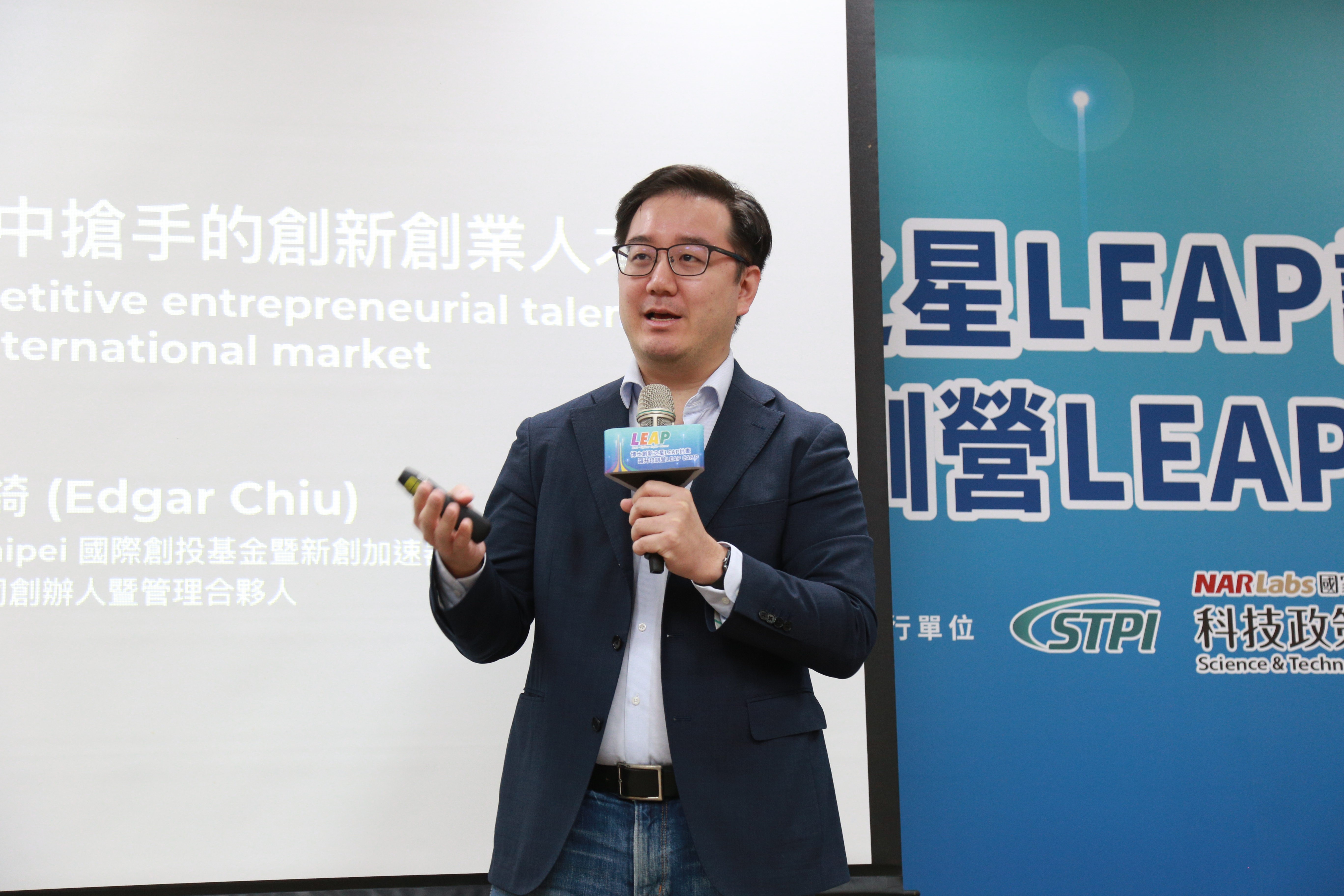 科技部產學司邱求慧司長致詞時表示,科技部陳良基部長甫上任時,有鑑於國內博士級人才與國際科技產業的連結不足,因此大力推動LEAP博士創新之星計畫。過往幾屆LEAP計畫的學長姊已有許多優秀的表現,不但深受海外企業的肯定,返國後也進入科技產業擔任高管或自行創業成功。他希望這屆的學員也能以台灣代表隊的心態自我期許,好好掌握住這個挑戰自我、改變自我的機會。